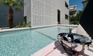 Our modern property features 6 fully-equipped apartments connected with a lift. Each apartment offers spacious balconies with outdoor lounge suites and comes with air conditioning, TV, and a fully equipped kitchen.